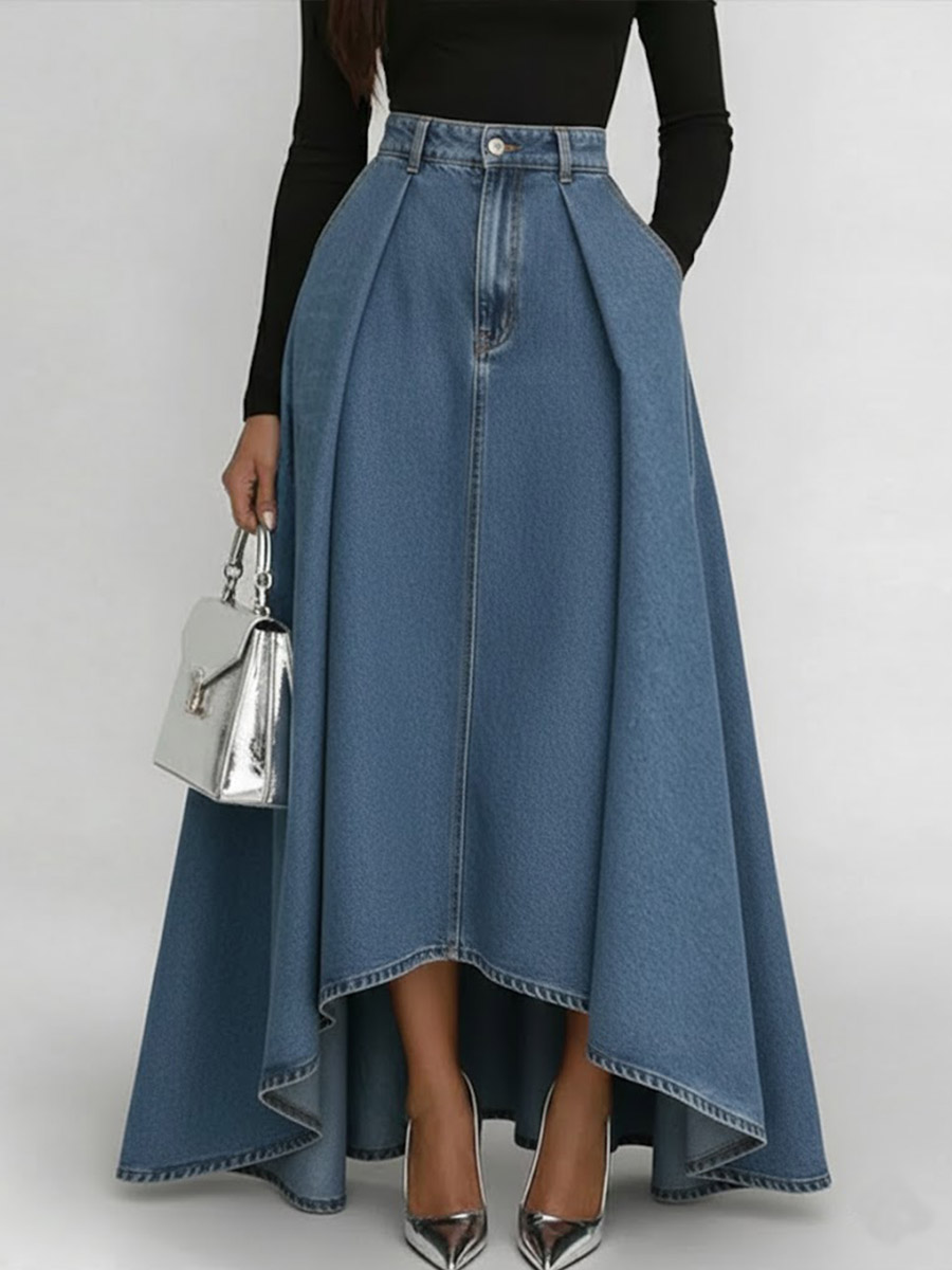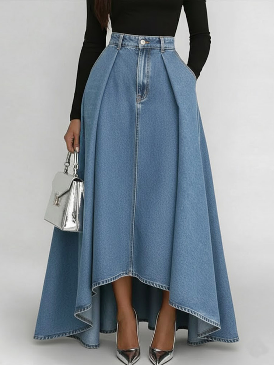 Women's High-waisted Loose-fitting A-line Denim Skirt