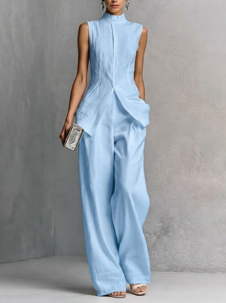 Stylish Slim-fit Sleeveless Linen And Cotton Two-piece Set