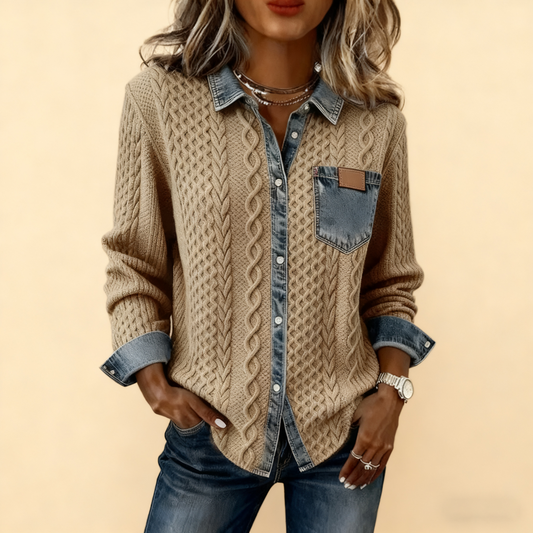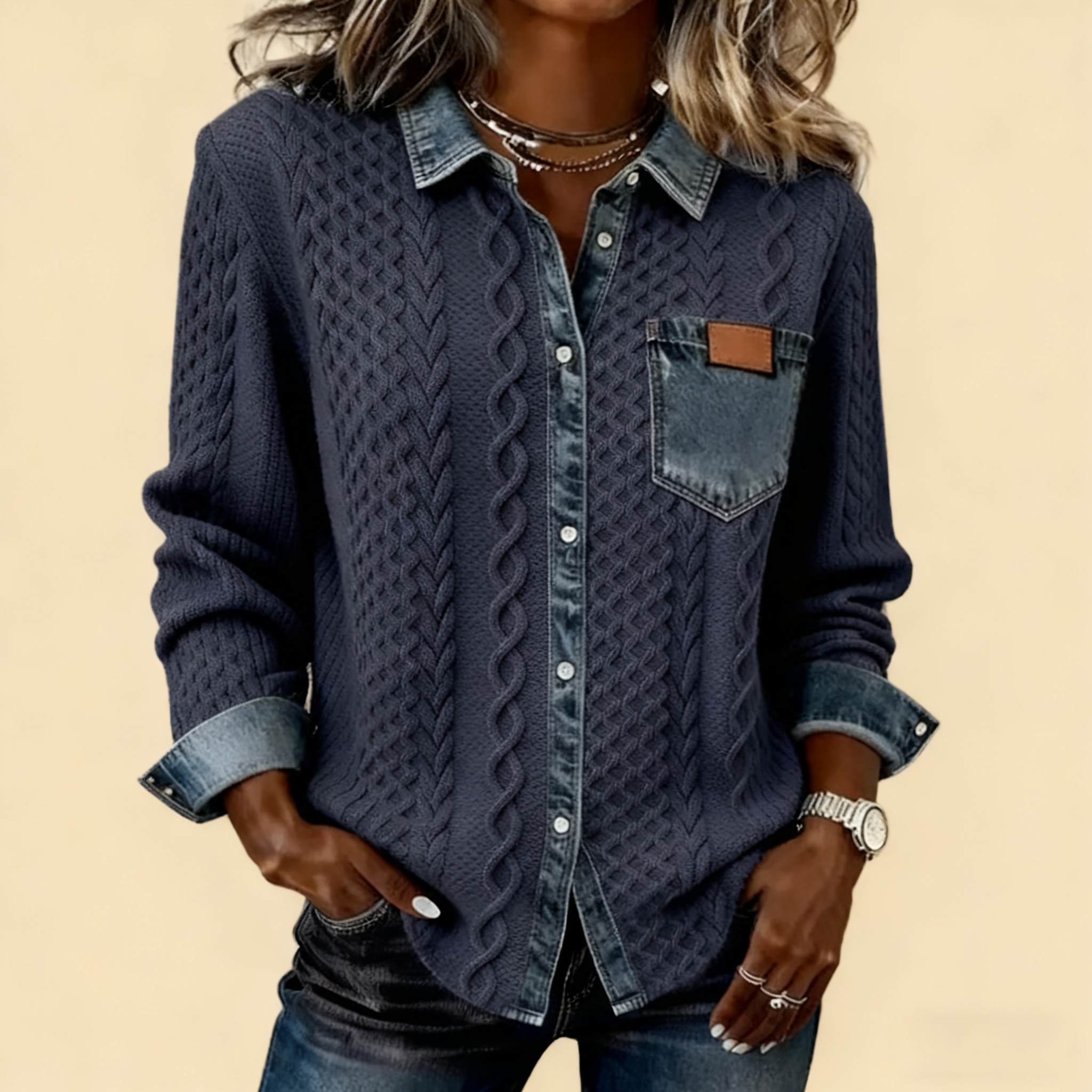 🔥【CLEARANCE SALE】 Women's Retro Knitted Denim Shirt
